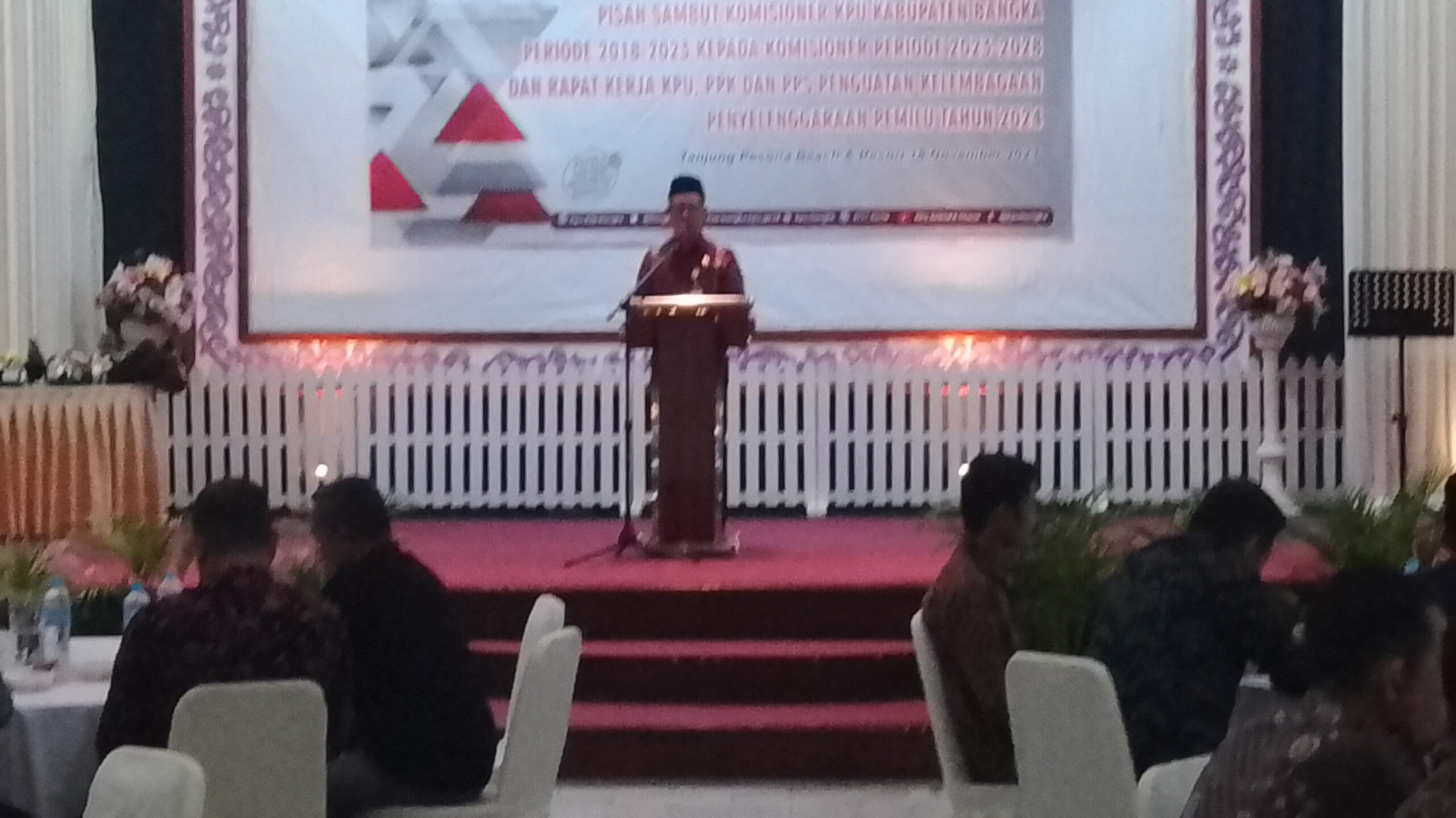 Ditambahkanya, mengatakan bahwa kepada seluruh anggota KPU kabupaten Bangka dan seluruh Panitia Pemilihan Kecamatan (PPS) se-Kabupaten Bangka dan juga PPS Desa dan Kelurahan yang ada di Kabupaten Bangka, agar supaya dapat untuk mensukseskan pelaksanaan pemilu serentak tahun 2024 yang ada di 8 Kecamatan, 17 Kelurahan, 62 Desa untuk di Kabupaten Bangka.