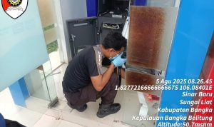 Bangka Penaexpres.com : Walaupun mengalami kerusakan parah di mesin Anjungan Tunai Mandiri (ATM) Bank Sumsel Babel di area Puskesmas Sinar Baru Kecamatan Sungailiat namun pelaku gagal menyikat uang tunai didalam berangkas ATM. Kejadian ini terjadi Selasa (5/8/2025) dini hari .