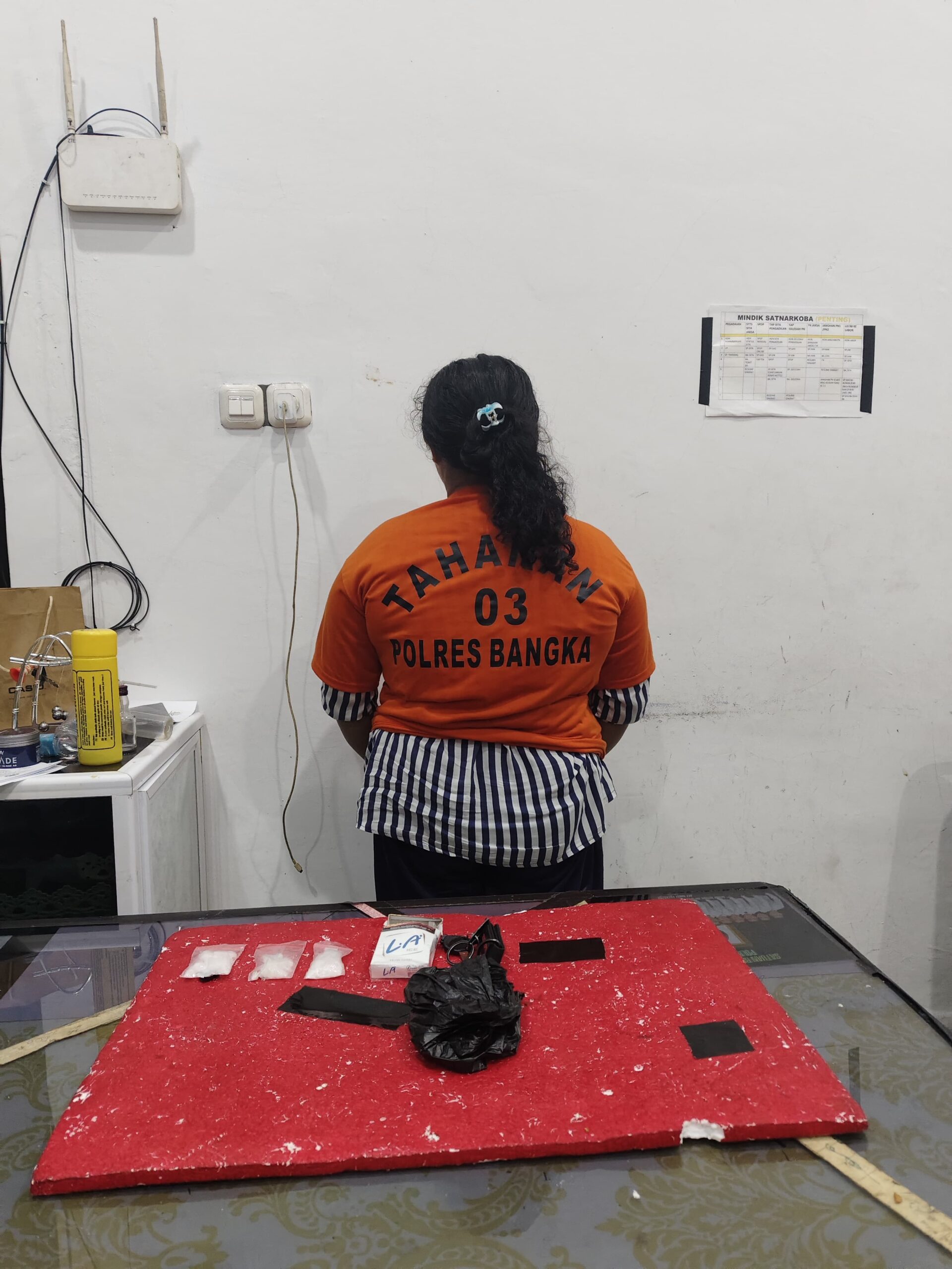Bangka Penaexpres.com :  Satuan Reserse Narkoba (Satresnarkoba) Polres Bangka menangkap seorang ibu rumah tangga (IRT) berinisial Eni alias ER (45) karena diduga menjadi pengedar sabu.