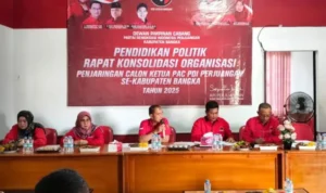 Sungailiat Penaexpres.com : Dewan Pimpinan Cabang (DPC) Partai Demokrasi Indonesia Perjuangan (PDIP) Kabupaten Bangka melaksanakan rapat konsolidasi organisasi. Kegiatan tersebut dalam rangka penjaringan calon ketua Pimpinan Anak Cabang (PAC) tingkat Kecamatan di Kabupaten Bangka, digelar di Kantor DPC Bangka,Minggu (23/11/2025)