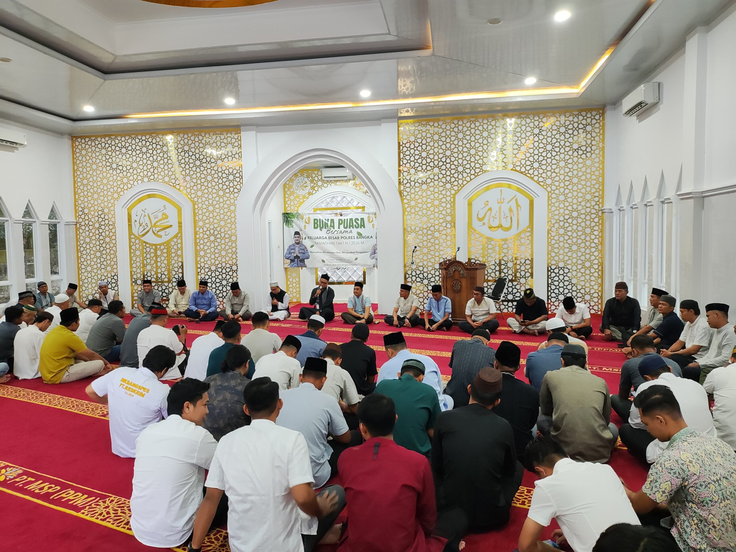 Kegiatan tersebut dilaksanakan di Masjid Al Inda dengan mengusung tema “Ramadan Menyatukan Hati, Menguatkan Pengabdian.” Acara diikuti oleh Kapolres Bangka AKBP Deddy Dwitiya Putra, wakapolres Bangka Kompol Yosyua Surya Admaja, Pju, Kapolsek Jajaran dan personel Polres Bangka.