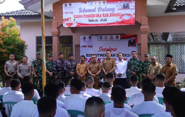 Sungailiat Penaexpres.com : Pemerintah Kabupaten Bangka menggelar rekrutmen dan seleksi Pasukan Pengibar Bendera Pusaka (Paskibraka) Tahun 2026 Kegiatan tersebut dibuka langsung oleh Wakil Bupati Bangka Syahbudin S.IP M.Tr.Ip ,di halaman Kantor kesbangpol Kabupaten Bangka, Senin (06/04/2026).