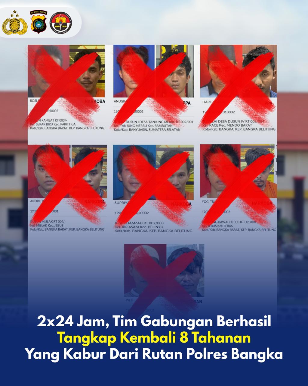 2×24 Jam, Tim Gabungan Berhasil Tangkap Kembali 8 Tahanan Kabur Dari Rutan Polres Bangka